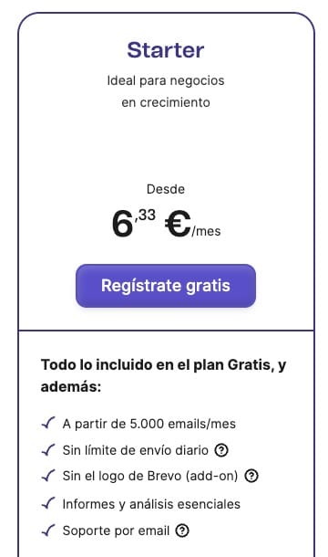 Como os decía, una plataforma de email ofrece su tarifa starter por 6,33€, un precio llamativamente bajo.